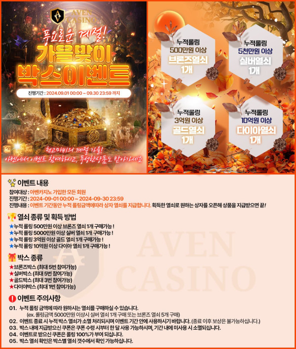 "아벤카지노 가을맞이 박스이벤트 안내"