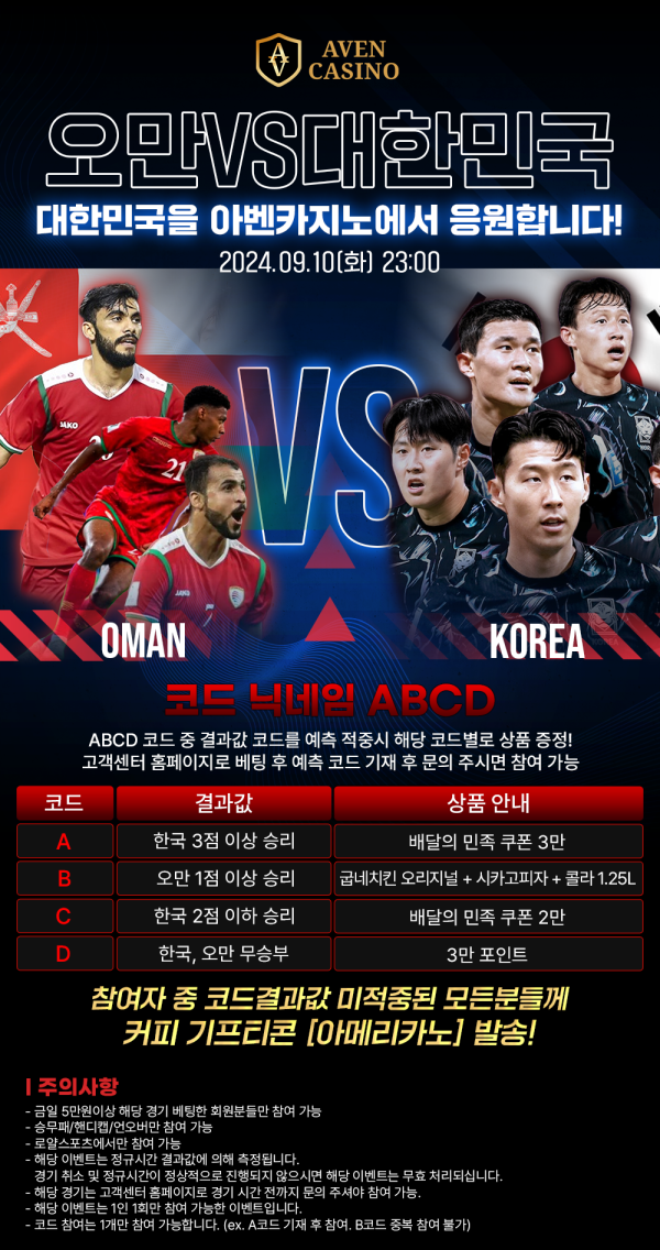 금일 오만 vs 대한민국 코드네임 이벤트 안내 드립니다.